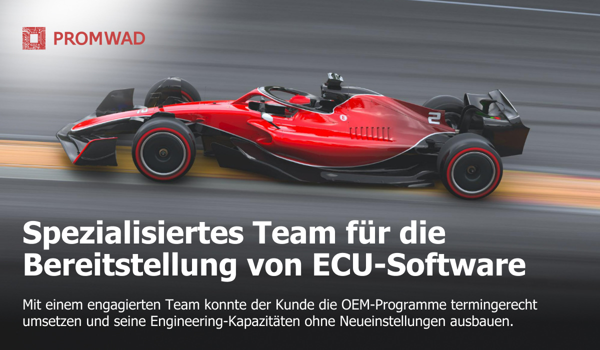 Projekt in Kürze: Promwad stellte einem europäischen Marktführer im Bereich Motorsporttechnologie ein engagiertes Team zur Verfügung, das ihm dabei half, parallele OEM-Programme termingerecht durchzuführen. Unsere Ingenieure übernahmen die Verantwortung für die ECU-Softwareaufgaben, sorgten für eine zuverlässige Lieferung und stärkten die technischen Kapazitäten des Kunden, ohne dass neue Mitarbeiter eingestellt werden mussten.