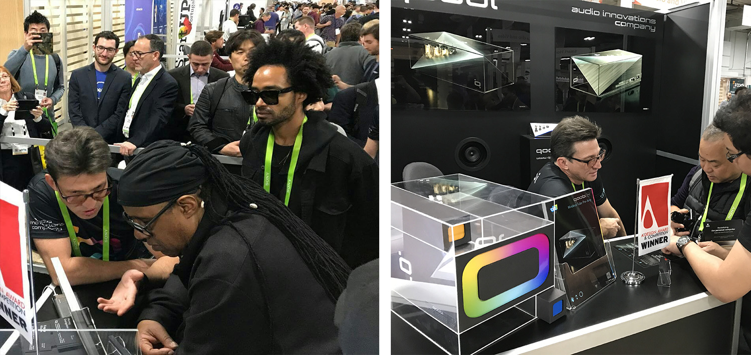 Ein fertiger Prototyp des Qoobi One wurde erfolgreich auf der CES 2018 vorgestellt, der weltweit führenden Messe für Unterhaltungselektronik in Las Vegas. Während der Ausstellung stieß das Gerät auf großes Interesse in der Branche und wurde unter anderem von Stevie Wonder begutachtet, der am Stand vorbeischaute und sich positiv zur Klangqualität äußerte, ein bedeutender Moment für das Projektteam.